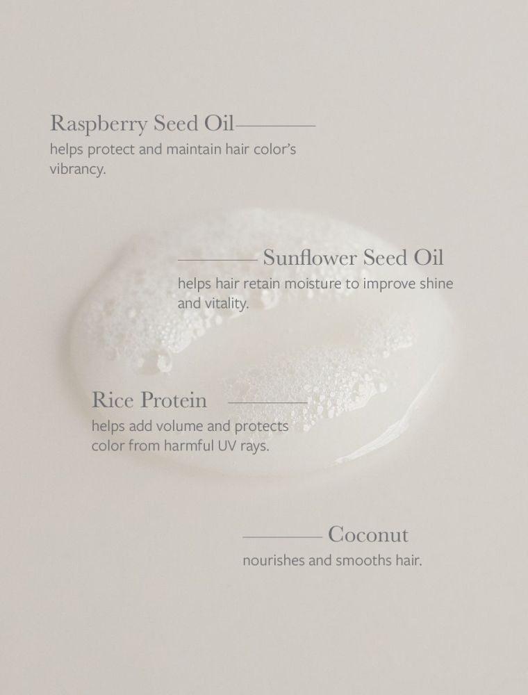 Our vegan Color Care Shampoo was formulated with organic raspberry seed oil, a powerful anti-oxidant, to help protect against color fade without the use of harsh chemicals and sulfates. Complete with a 100% natural basil and nectarine aroma, your lustrous, color-treated hair will thank you.