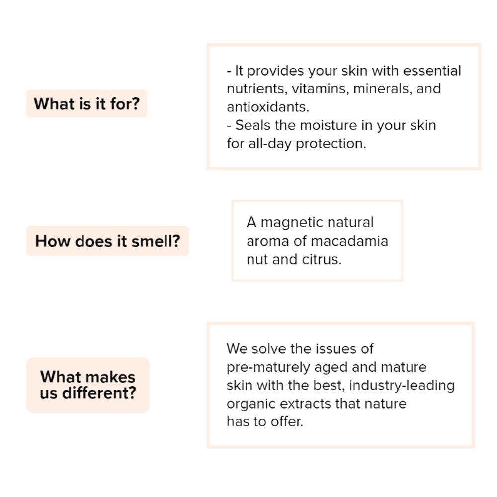 Apply to cleansed skin after any serums and eye treatment. Apply a dime-size amount onto skin, using fingertips.