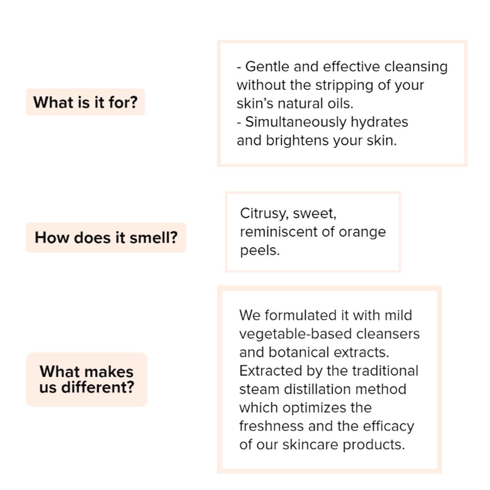 Wash your face without stripping your skin of its natural oils. Sweet orange and white willow botanical extracts gently exfoliate the skin to clear pores of dirt, makeup, pollutants, and excess sebum.